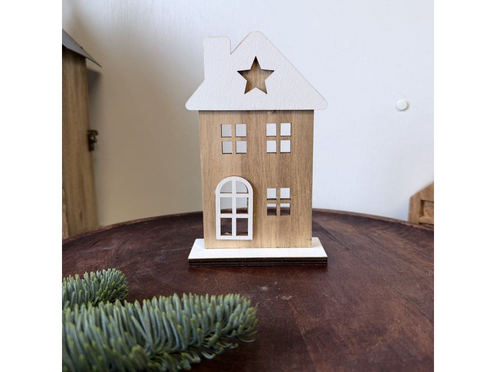 Domeček na podstavci, přírodní dřevo, střecha a okno bílá barva