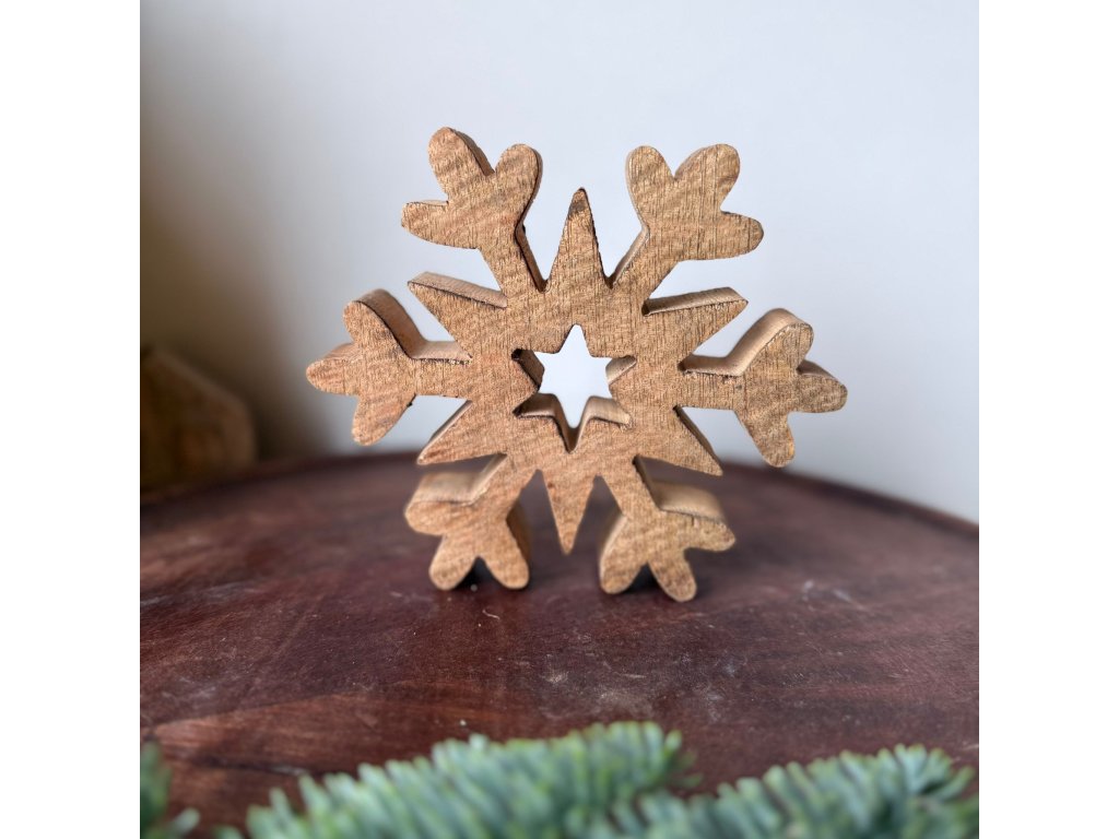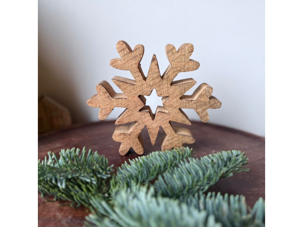 Dřevěná vločka hvězda 13,5cm