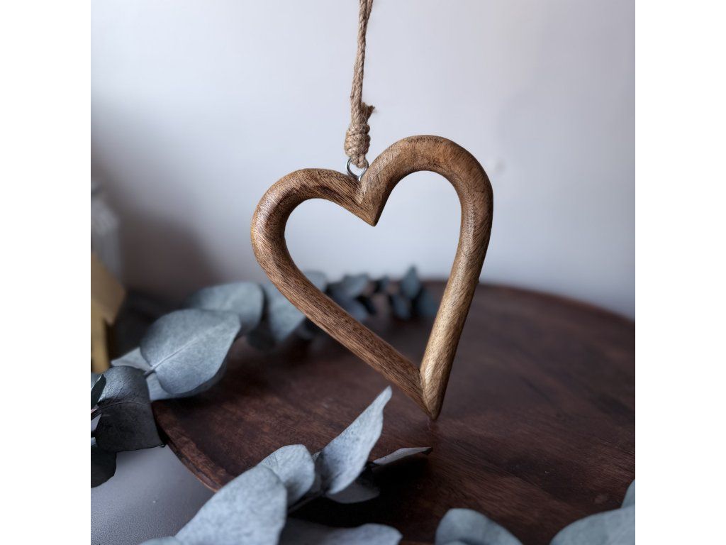 Obrys srdce z tvrdého mangového dřeva. Symbolizuje lásku a pohodu.