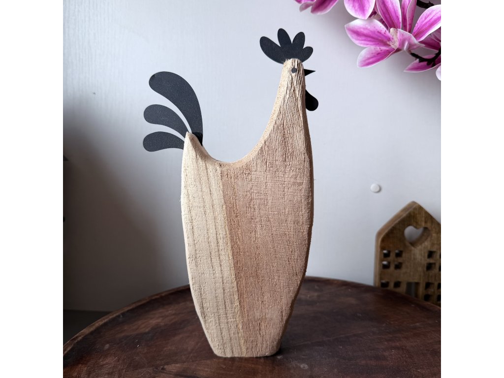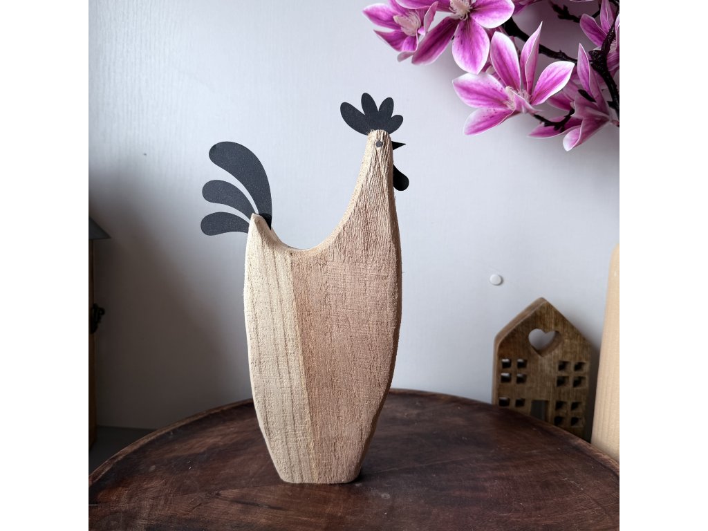 Dřevěný kohout v kombinaci s kovem. Velmi oblíbená kombinace.