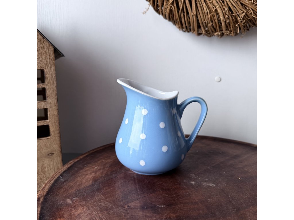 Oblíbený dekor puntíků. To přesně splňuje tento keramický džbán. Může sloužit jako dekorace nebo praktický kousek do Vaší domácnosti.