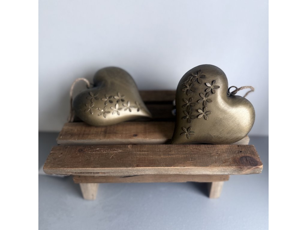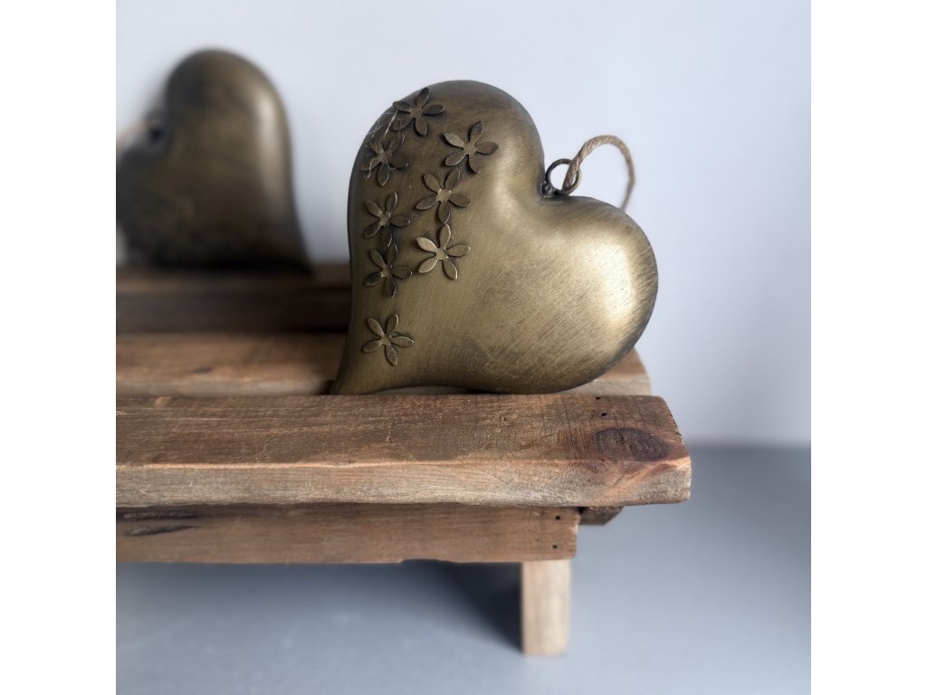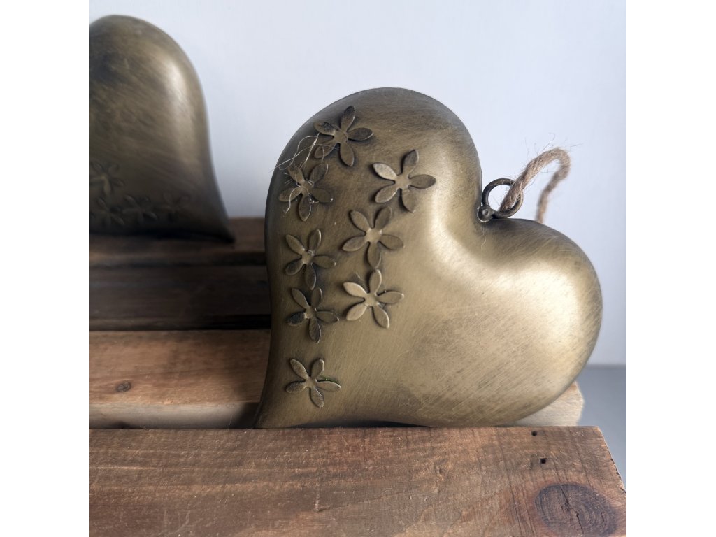 Kovové vypouklé srdce s motivem 3D květiny. Květiny jsou z obou stran