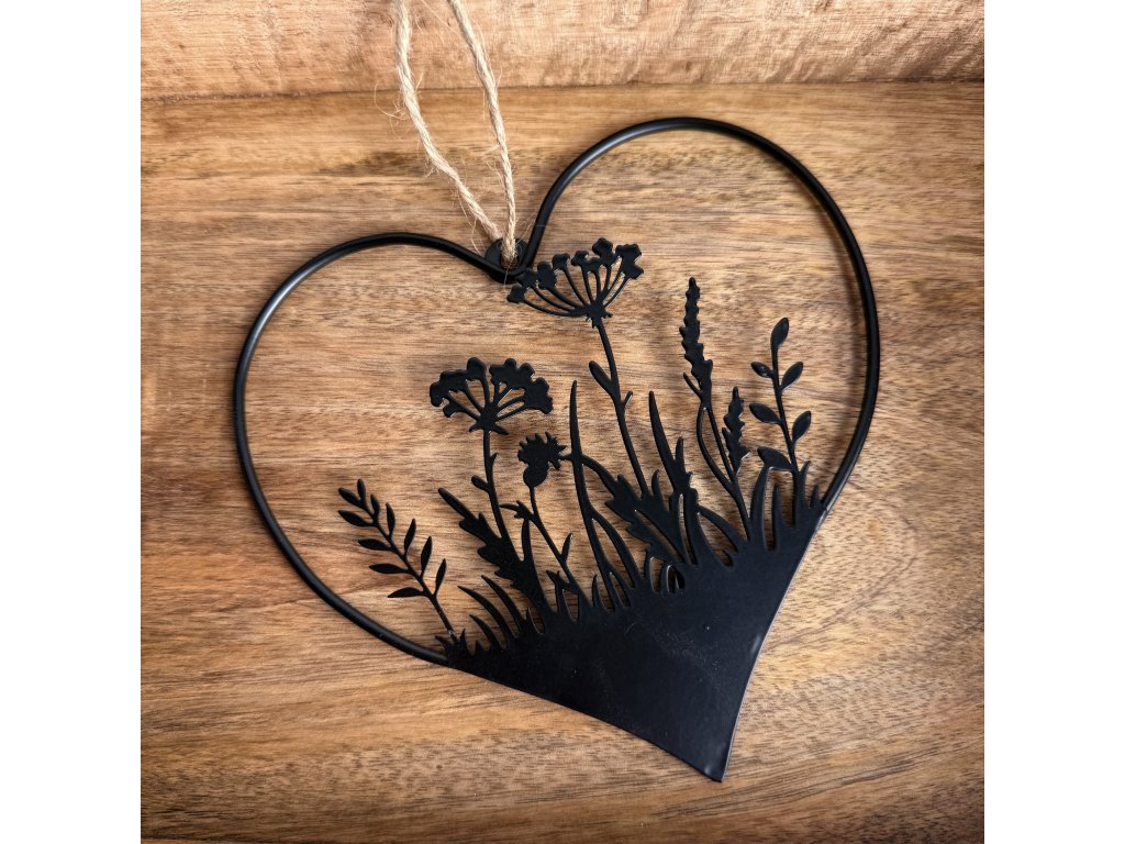 Kovové srdce k zavěšení s motivem luční kvítí