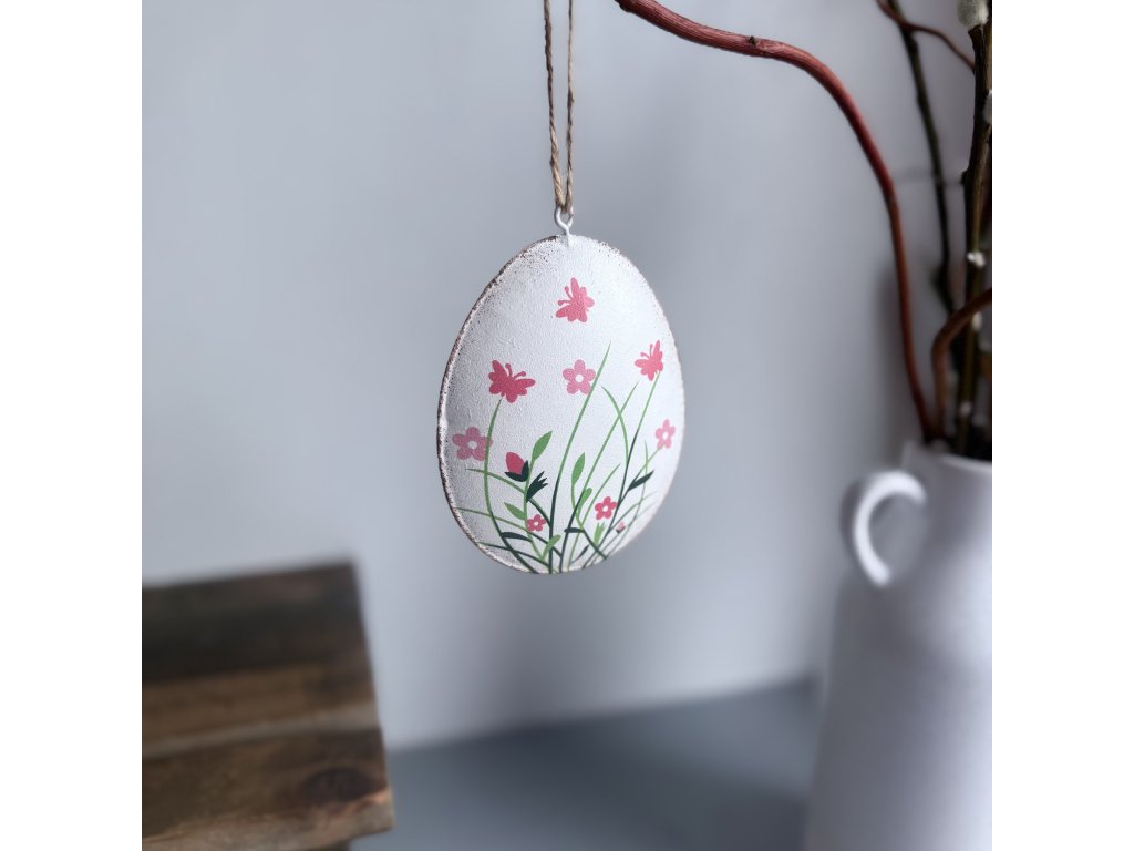 Kovové vajíčko s motivem květin k zavěšení