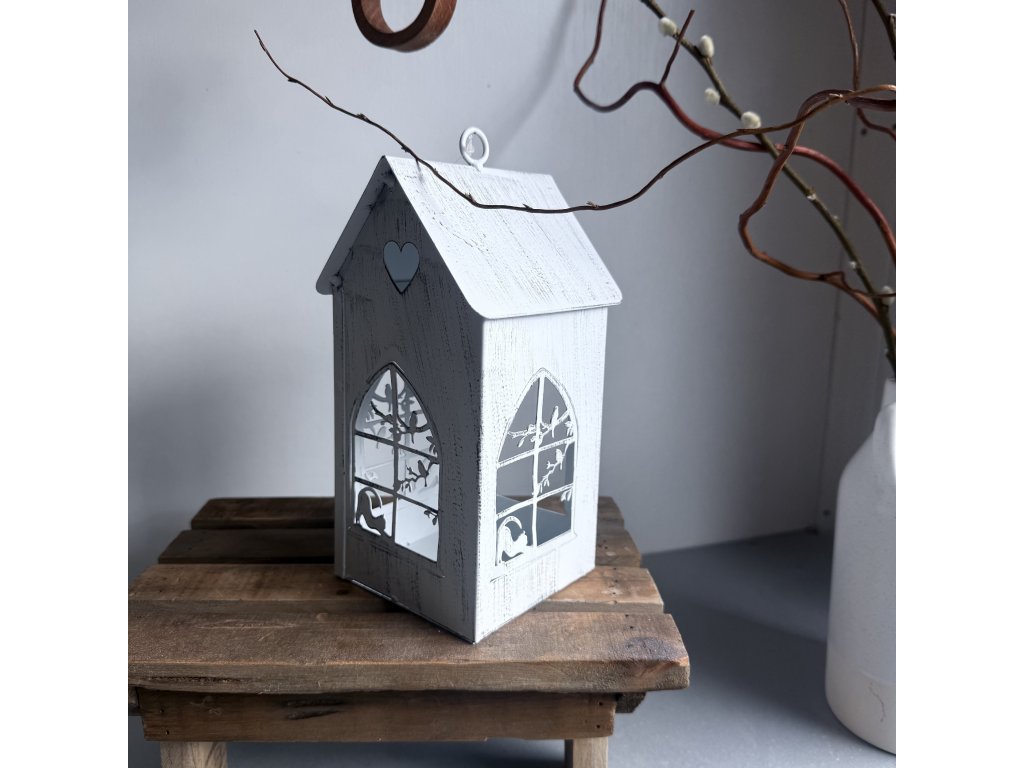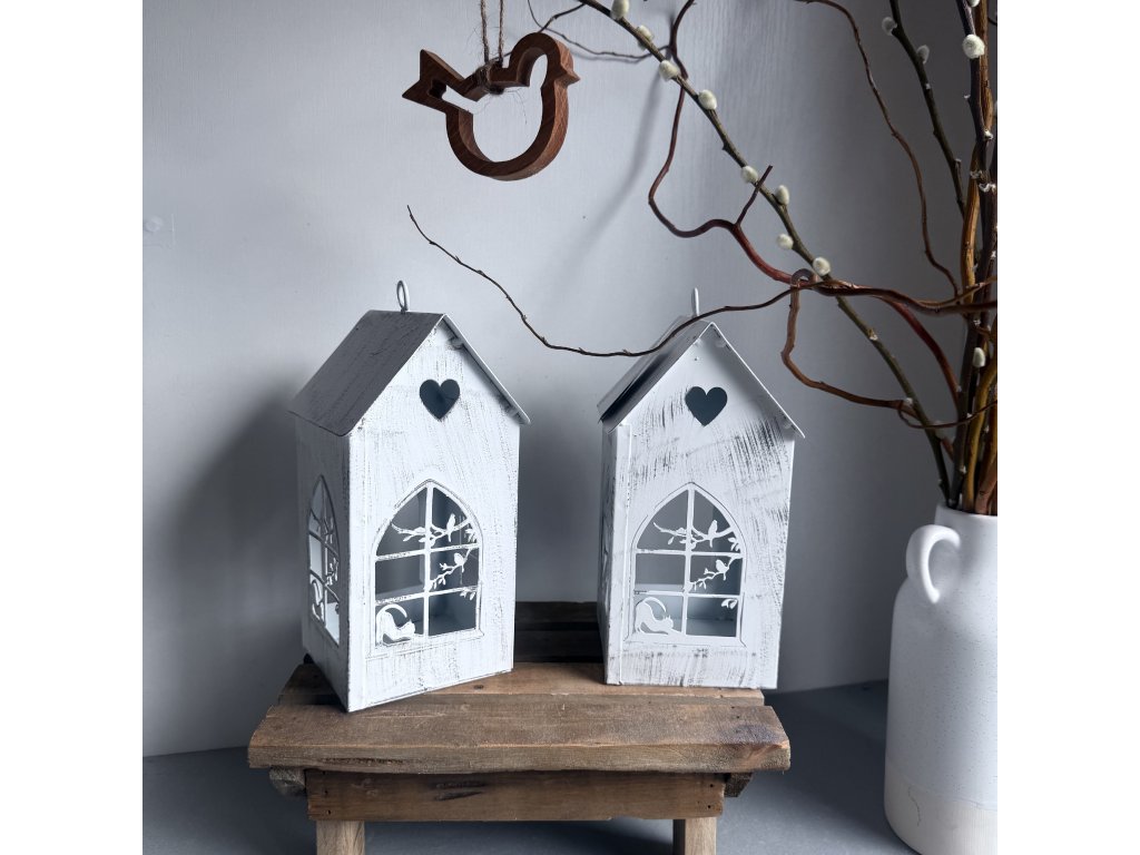 Kovový domek s jarním motivem. Je možné k zavěšení nebo na položení.