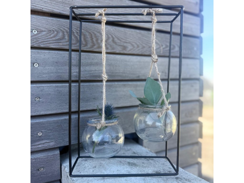 Stylová dekorace, kterou si můžete dozdobit a nadekorovat, tak jak Vám se bude líbit. Kovový 3D rámeček, který je vyplněný dvěma skleněnými baňkami na osázení sukulentů, nebo mít na živé kytičky, sušené, cokoliv.