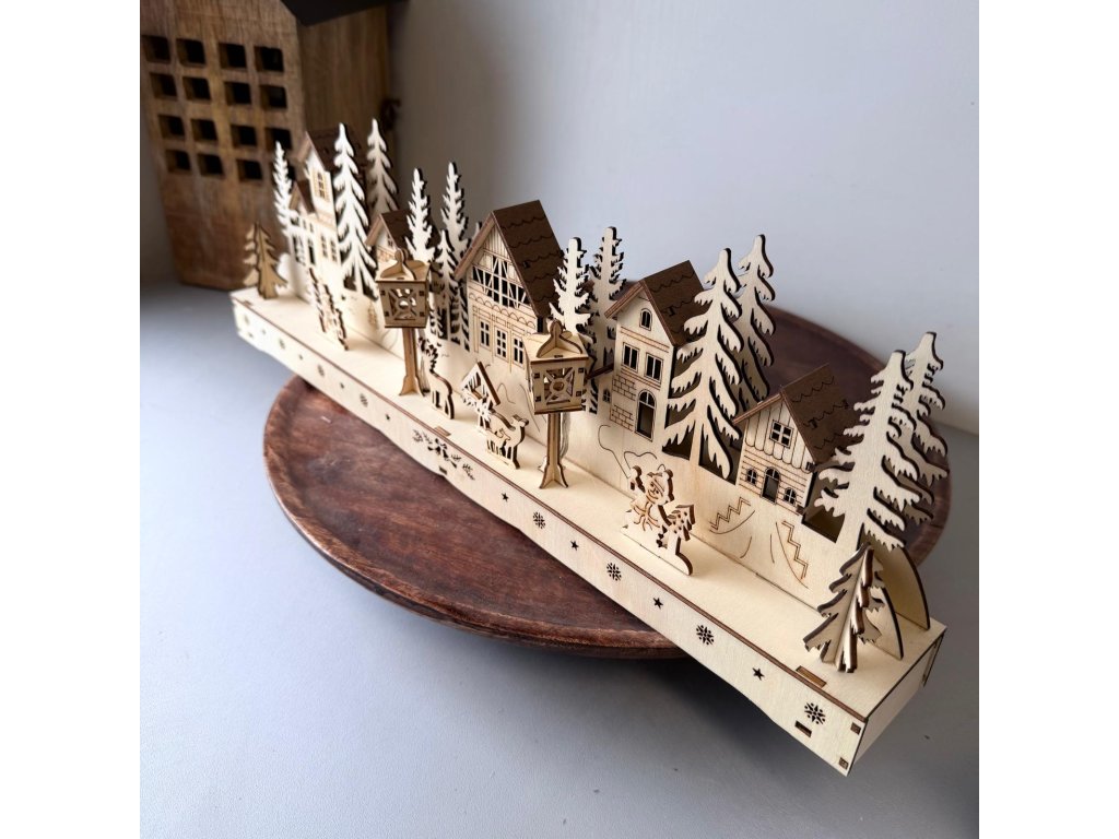 Dřevěná vánoční vesnička s LED osvětlením