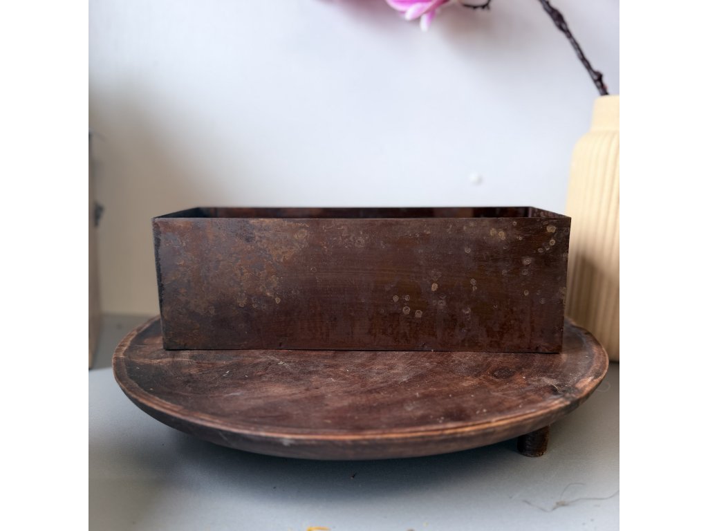 Oblíbený rezavý dekor truhlíku. Ocelový materiál je těžký a tak Vám bude všude krásně držet.