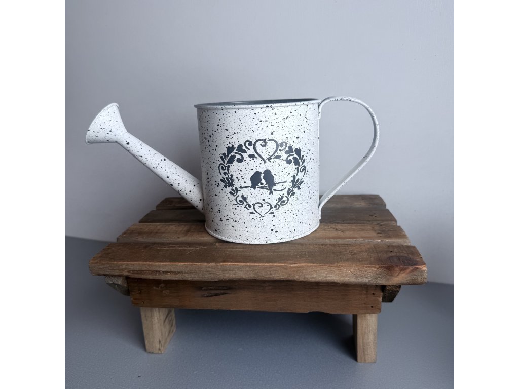 Plechová konvička s ptáčky v srdíčku. Pro milovníky stylového zalévání.