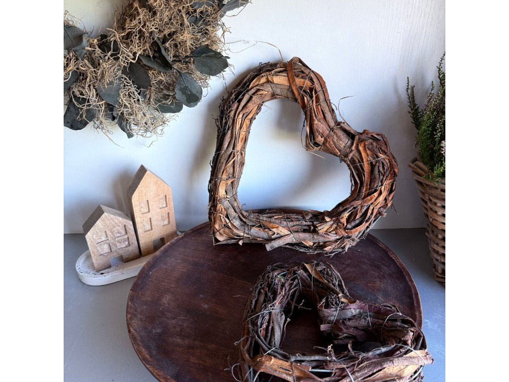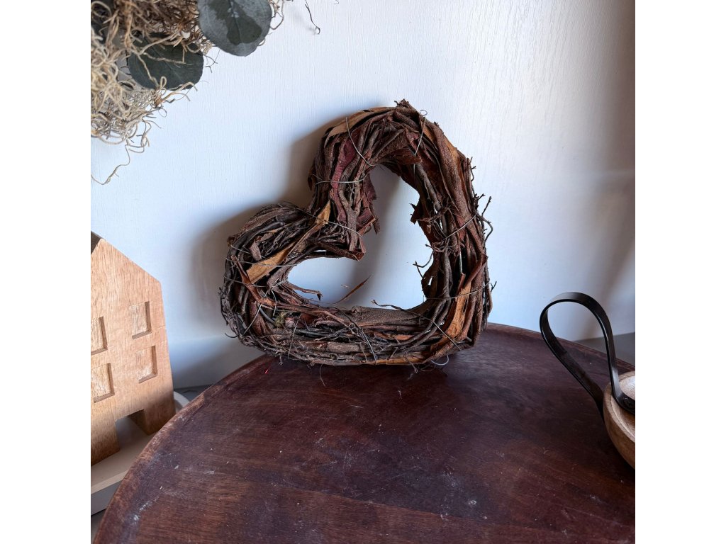 Krásné zpracované srdce z větviček a kůry. Každý kousek originál. Nadčasová dekorace, která se hodí kamkoliv, na zeď, na dveře, jen tak postavit na poličku. Rozhodně bude i jako hezký kousek na hřbitov