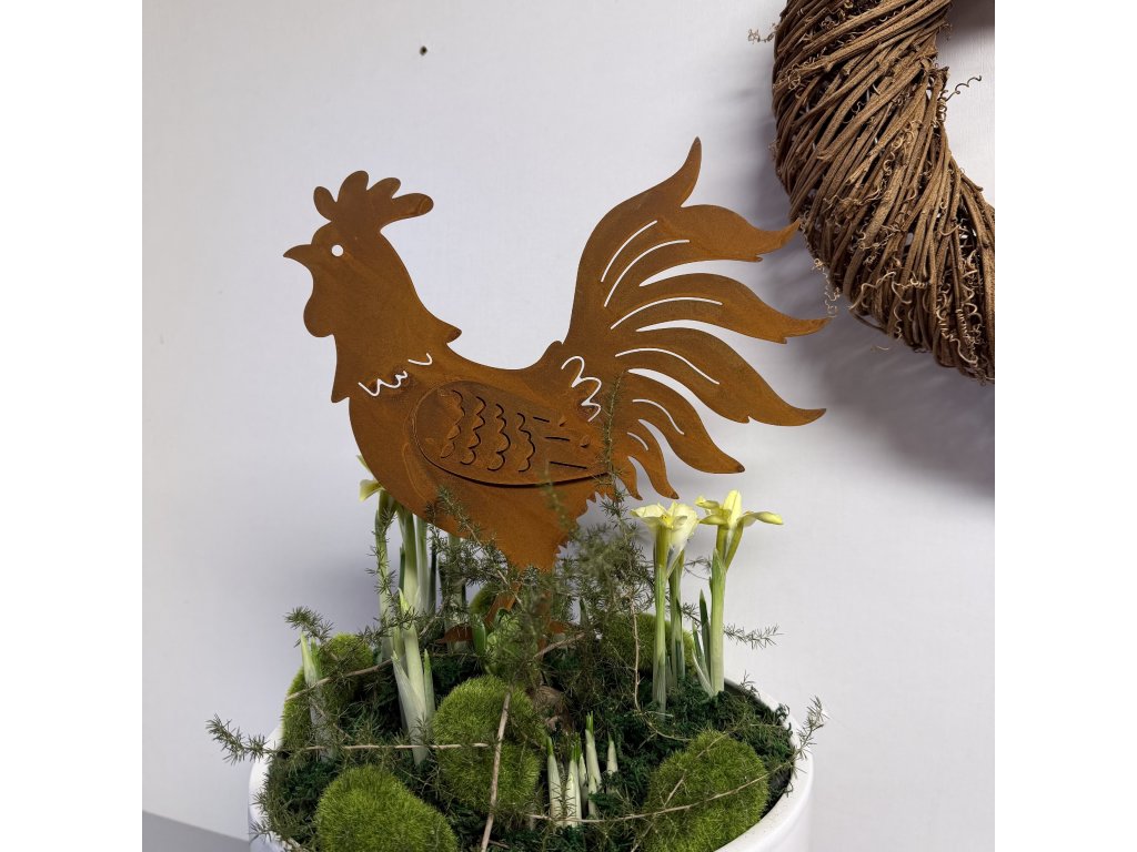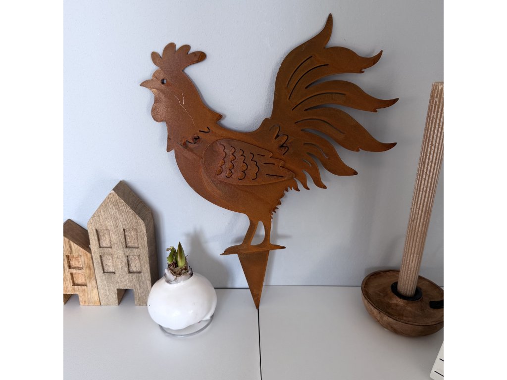 V posledních letech velmi oblíbený rezavý povrch. V tomto případě krásný a vkusný kohout s 3D křídlem.
