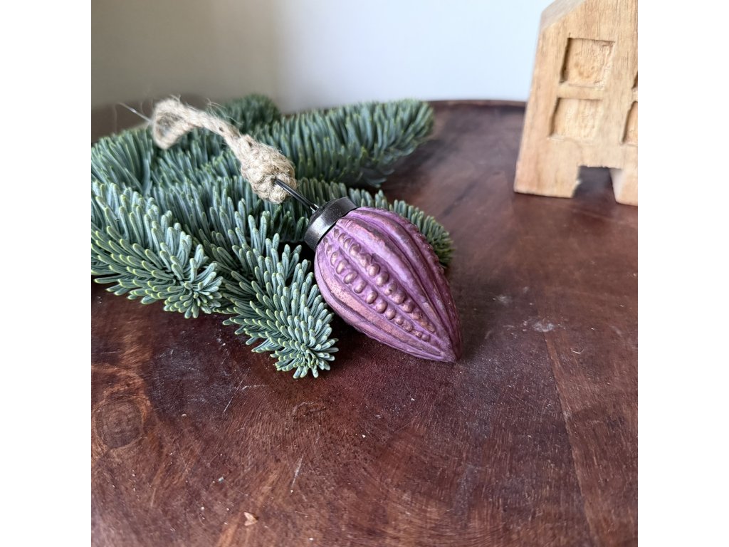 Skleněná ozdoba šiška bordó matná 3,5x6,5x3,5cm