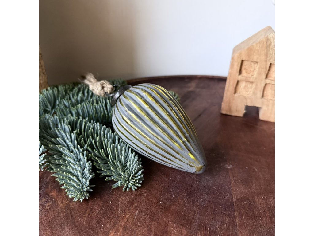 Skleněná ozdoba šiška šedozlatá 6 x 11 x 6cm