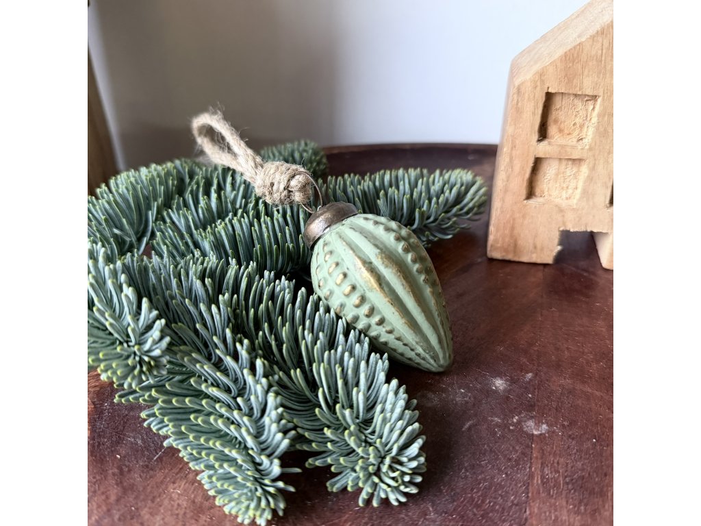 Skleněná ozdoba šiška zelená matná 3,5x6,5x3,5cm