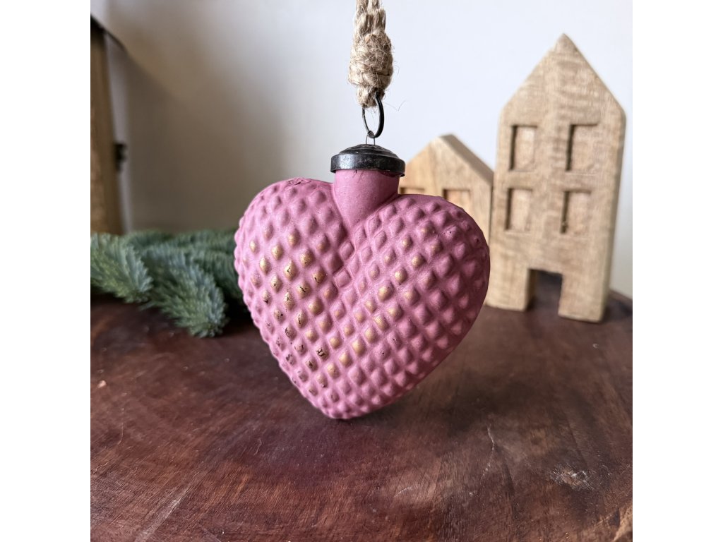 Skleněná ozdoba srdce bordó matná 7,5x8,5x3,5cm