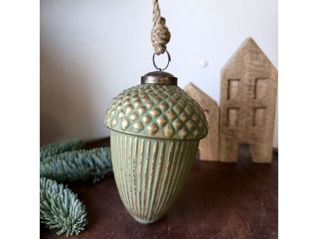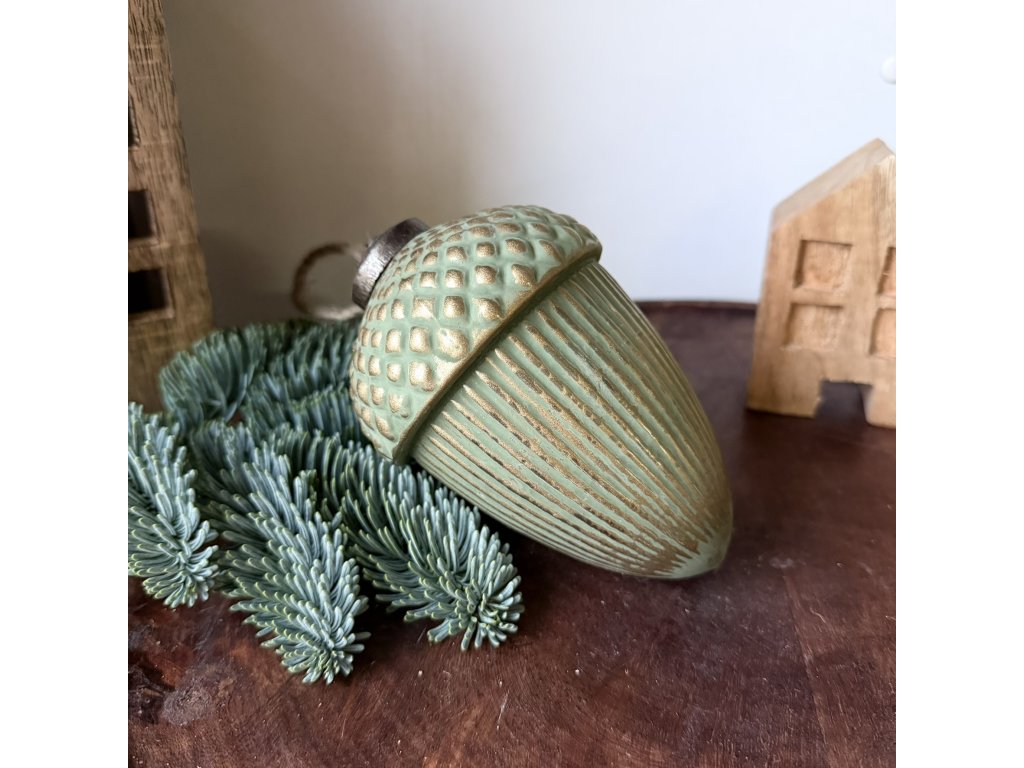 Skleněná ozdoba žalud zelená matná 9x14x9cm