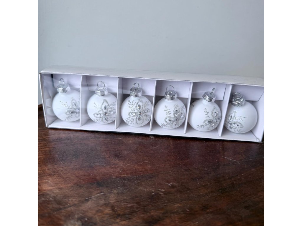 Vánoční skleněné ozdoby s motivem květiny 6ks v sadě.