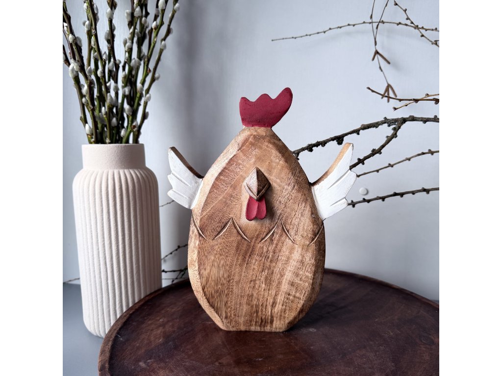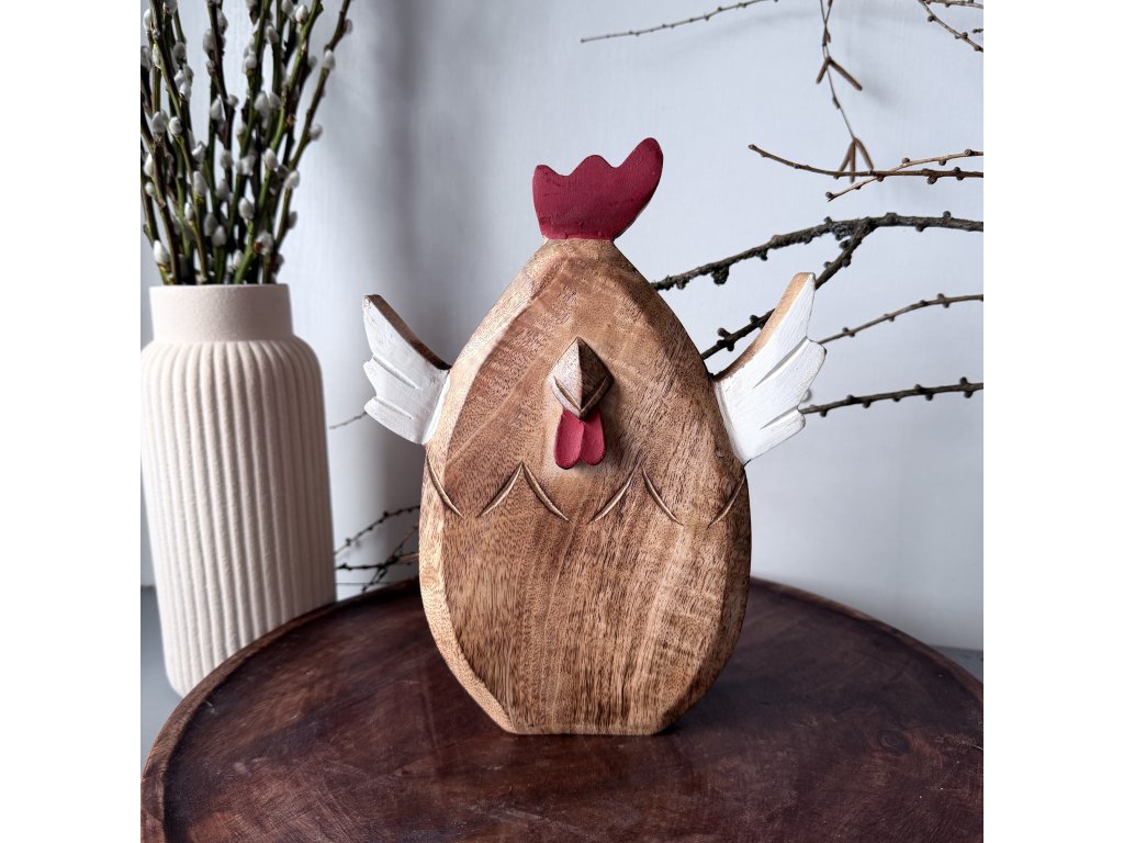 Dřevěná obří slepička/kuřátko. Krásná a nepřehlédnutelná dekorace. Vyrobené ručně z tvrdého dřeva MANGA.