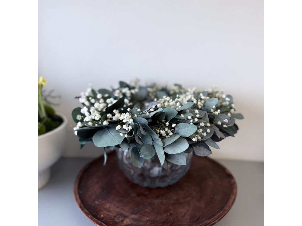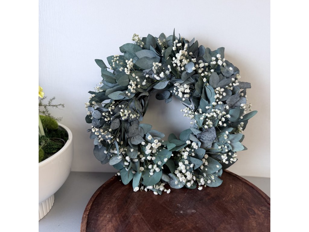 Stabilizovaný eukalyptus, který krásně voní a hlavně Vám vydrží roky. Nevěříte? Přesvědčte se sami. Tenhle věneček Vám vydrží roky. A co proto musíte udělat?