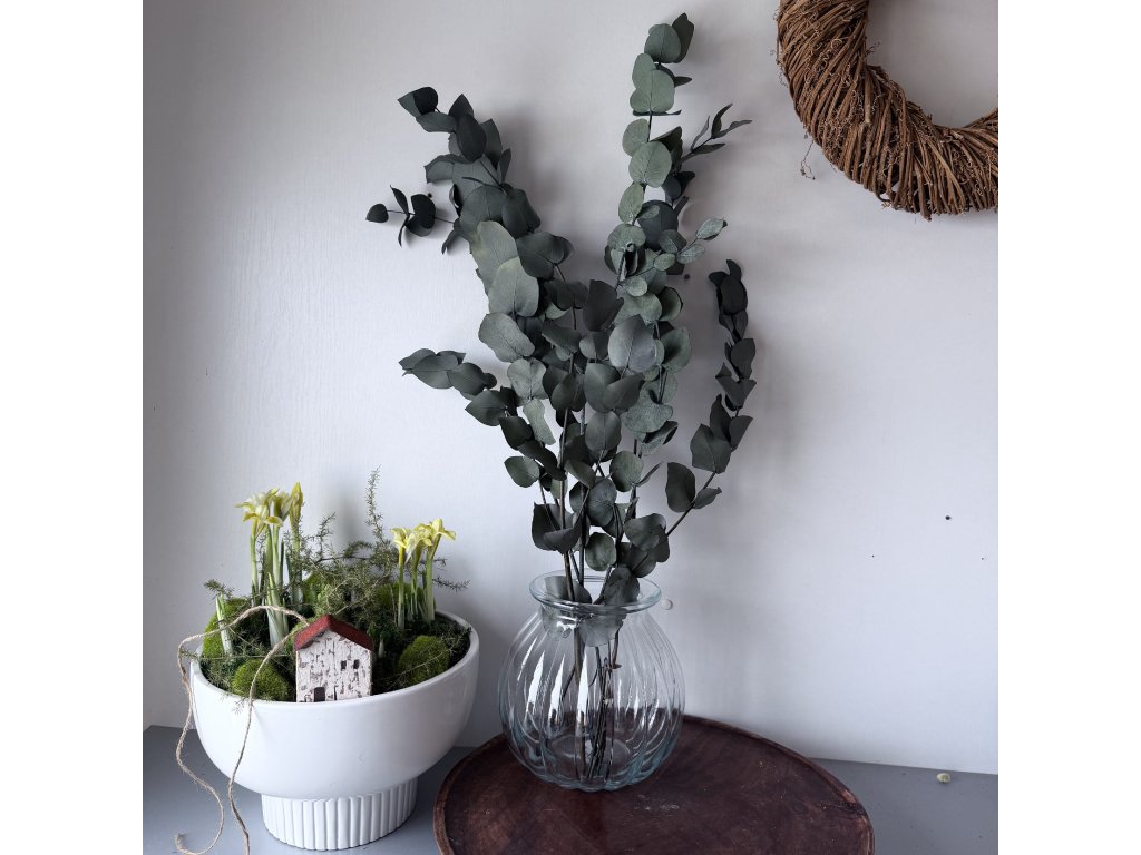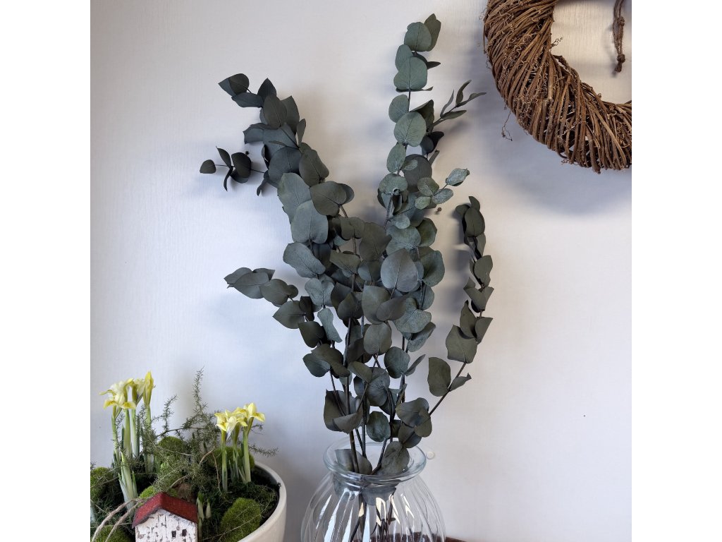 Eukalyptus je výjimečný tím, že je chemicky ošetřen tak, aby dlouhodobě udržel čerstvý vzhled a byl stále krásný. Stabilizované rostliny doporučuji mít v interiéru, protože nemají rády vlhko. Stabilizované květiny si velice rychle oblíbíte, protože čerstvý vzhled rostlin Vás nadchne.
