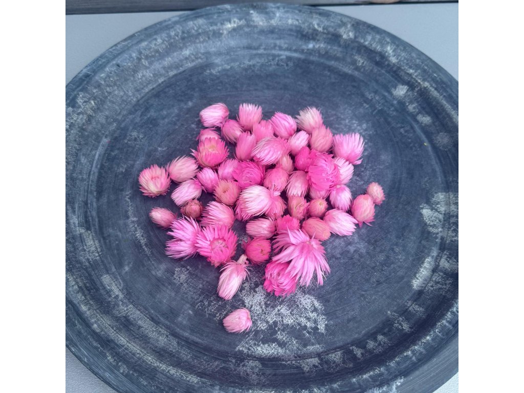 Sušené slaměnky bez stonků, neonově růžová barva.