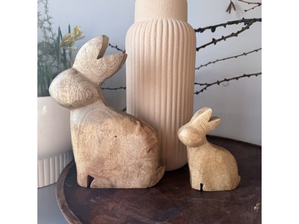 Dřevěný přírodní zajíc ve 3 velikostech. Malý: 10cmStřední: 13cmVelký: 19cmMateriál: dřevoBarva: přírodní dřevo lakované